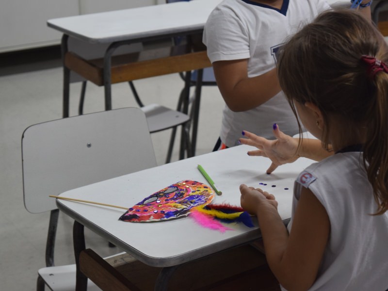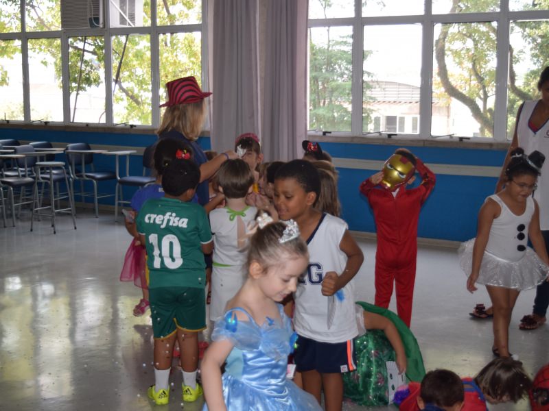 Para celebrar essa data e entrar no clima descontraído do Carnaval, os alunos da Educação Infantil, 1º ano do Ensino Fundamental e Integral, na sexta-feira, dia 05, vieram fantasiados de inúmeros personagens e com adereços, como máscaras e colares, alguns que eles mesmo produziram para o bailinho do EG.