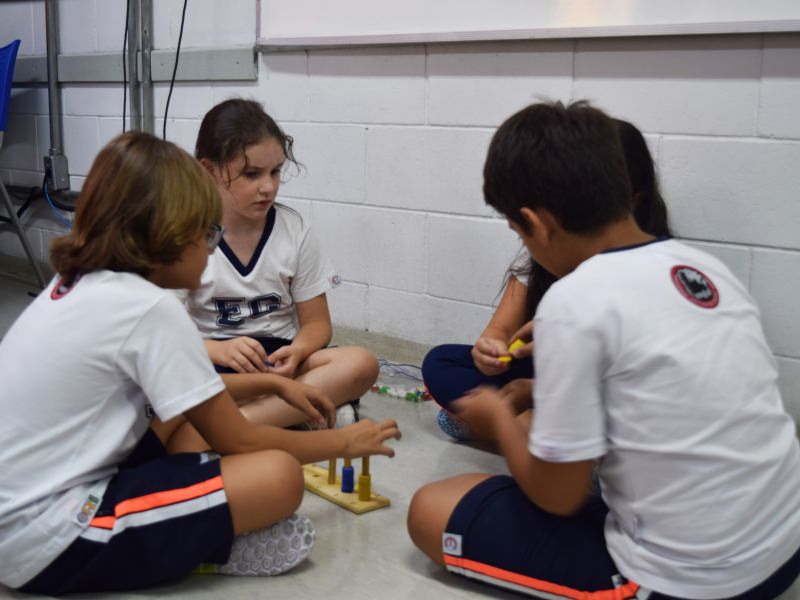 O 3° ano do Ensino Fundamental usou o ábaco, dois dados e peças coloridas com o objetivo de aprender a adição com reagrupamento. Em quartetos, os estudantes jogaram o “Nunca Dez”, uma forma fácil de entender as unidades, dezenas e centenas. Com a orientação das professoras Adriana Furlani, Andreia Akima, Aparecida Idália, Carmem Lúcia, Cristiane Nunes e Paula Cristina, os jovens colocaram em prática a teoria matemática.
