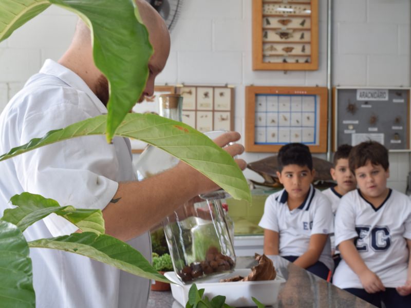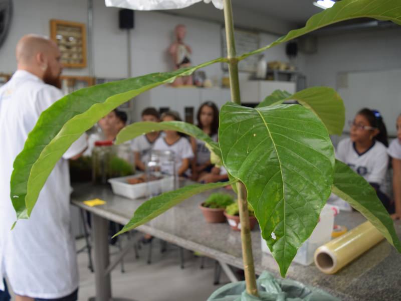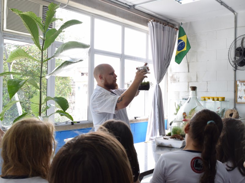 Com um pote de vidro, argila expandida para simular as pedras do solo, terra, musgos para manter a umidade, e plantas, os estudantes ficaram fascinados com o fato de a própria natureza produzir água e nutrientes para manter-se viva. Aprenderam também que, com a transpiração das plantas, não seria necessário regar o terrário. No final da aula, os alunos tiraram todas as dúvidas sobre a dinâmica do mundo natural.