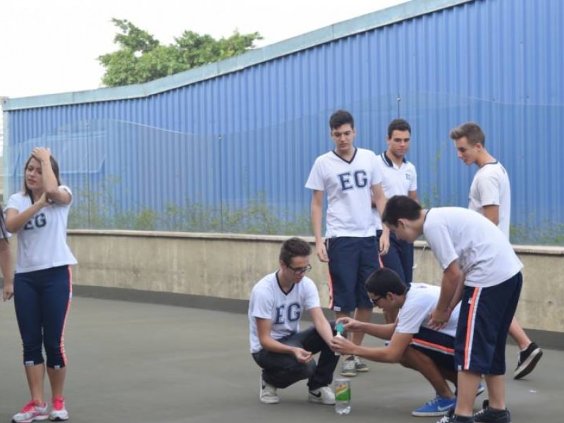 A 3ª série do Ensino Médio, sob orientação do professor de Química, Alex Ferreira, realizou um experimento, na semana do dia 21de março, com o intuito de observar de perto a reação que os antiácidos causam no organismo. As classes confeccionaram “foguetes químicos”, utilizando garrafas pet, frascos de desodorante, rolhas e comprimidos Sonrisal.