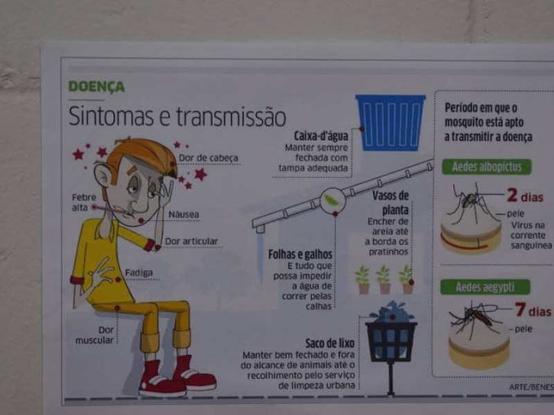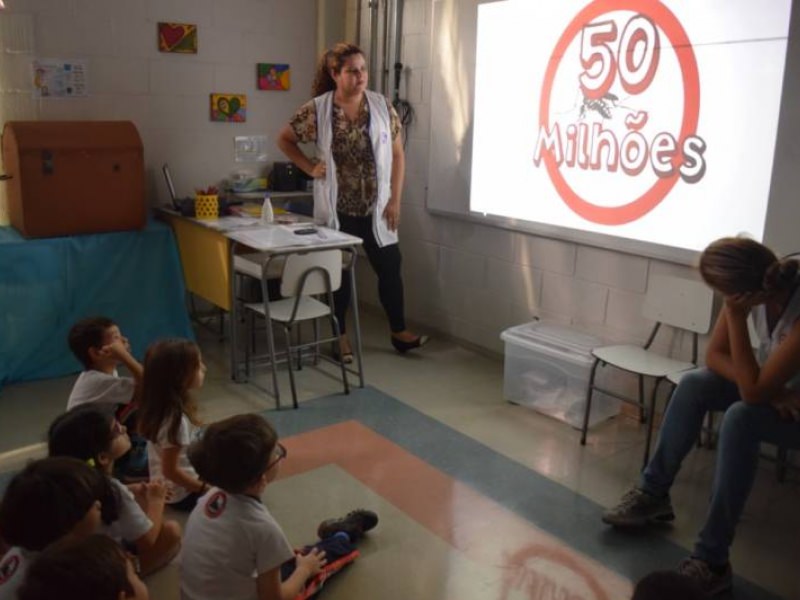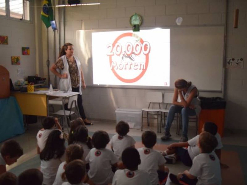 Foi apresentado aos estudantes um desenho que explicava sobre a proliferação do inseto. Depois, a professora fez uma palestra dinâmica, explicando todos os sintomas da dengue, chikungunya e zika e quais as diferenças entre as três doenças. Os pequenos foram orientados a, caso sentissem algum daqueles incômodos, ir imediatamente ao médico.