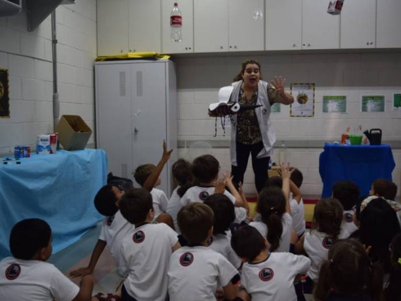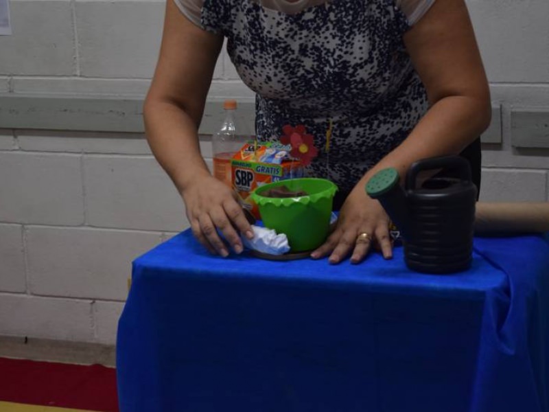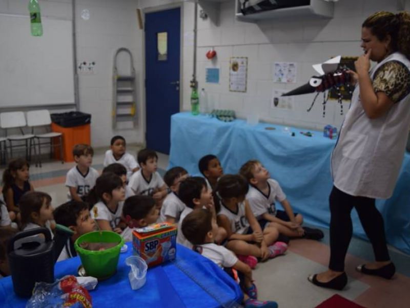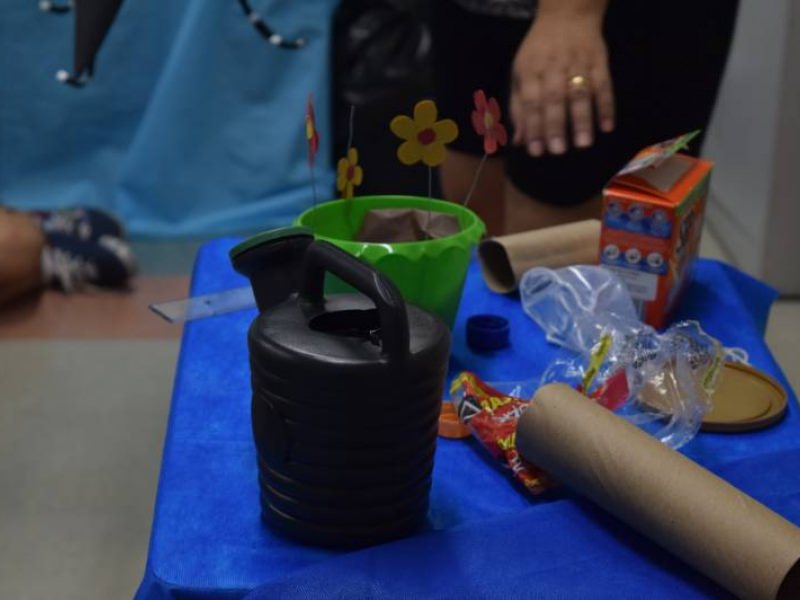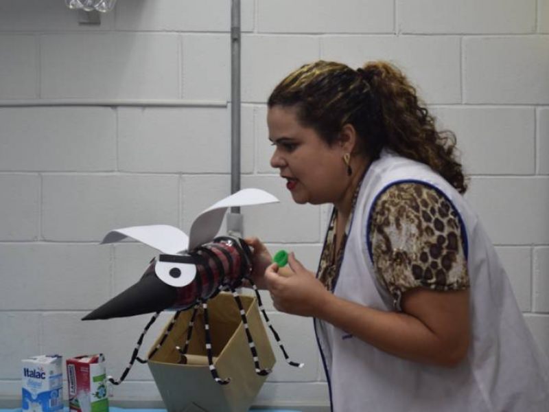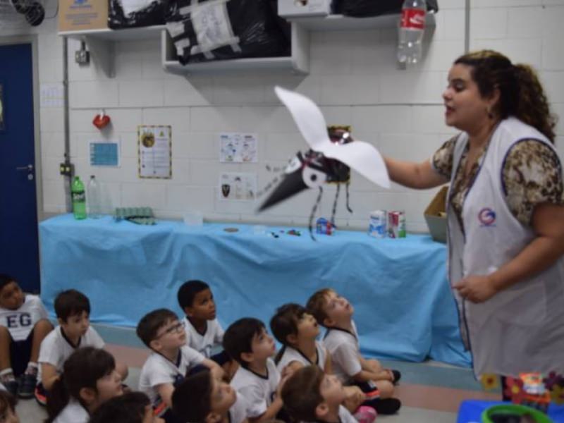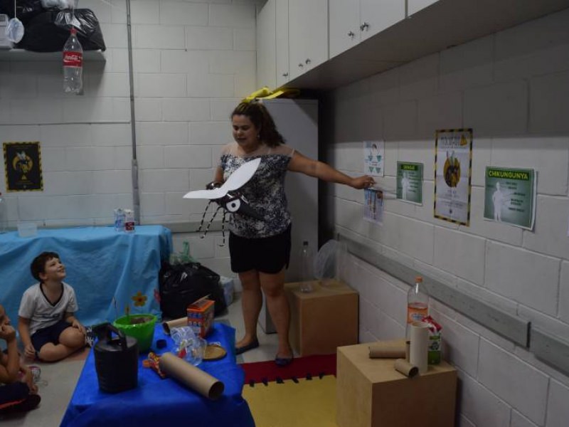 Após a palestra, a professora propôs que, nas próximas aulas, fossem realizadas atividades com materiais recicláveis, como por exemplo, a elaboração de um boneco para representar o mosquito e a construção de uma casa com caixas de leite.