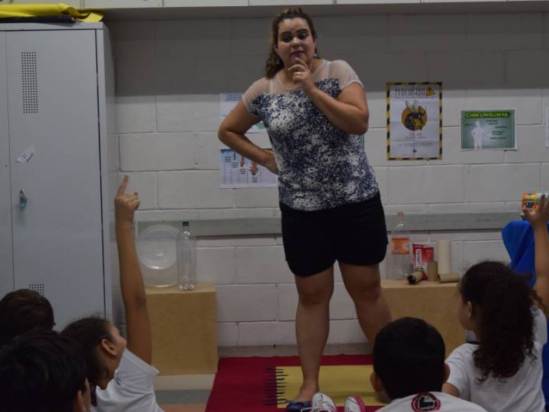 A semana do dia 4 de abril foi intitulada pela educadora Érika Magalhães como “Semana do Aedes Aegypti”, pois os alunos do período Integral estudaram as doenças transmitidas pelo mosquito e quais as formas de prevenirem-se contra elas