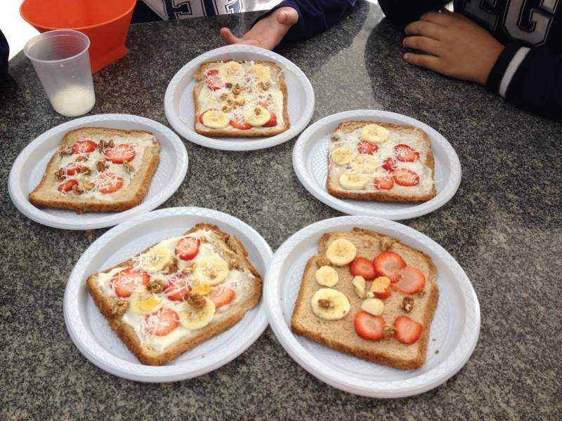 A nutricionista Thaísa e as estagiárias Beatriz e Danielle fizeram o pré-preparo necessário, como higienização dos alimentos, seleção e corte. E as turmas rechearam e decoraram suas preparações. Depois de degustarem, aprenderam sobre os benefícios de cada ingrediente utilizado.