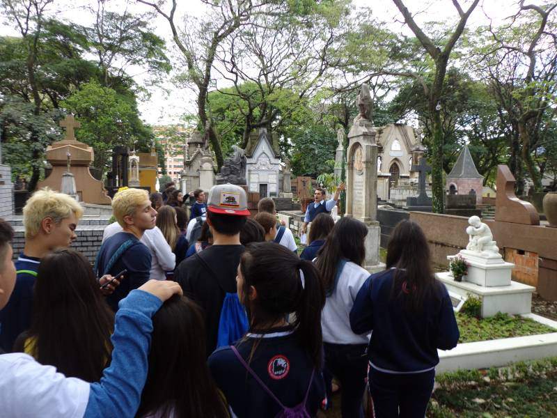 Durante o trajeto, foi possível relacionar diversos períodos da Literatura, Arte e História, já que o cemitério abriga túmulos e mausoléus de diversos períodos da sociedade. Inclusive esses temas estão presentes nos vestibulares e redações, algo que é uma grande preocupação para jovens dessa turma.