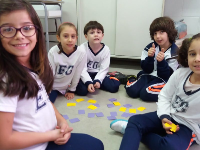 Esse foi um dos temas abordados pela Prof.ª Kelly Cristina nas aulas de Empreendedorismo e Ética, do 2º ano do Ensino Fundamental. Em um primeiro momento, as crianças fizeram um debate para tentar compreender alguns sentimentos selecionados pela professora. Depois de chegarem a uma conclusão, a turma usou algumas técnicas artísticas e a imaginação para ilustrar cada sentimento em peças de um jogo.