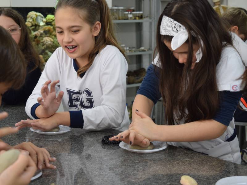 Na semana do dia 15 de agosto, foi a vez de os alunos do 3º ano do Ensino Fundamental estudarem a importância histórica dos fósseis. No laboratório, com a ajuda do Prof. Carlos Sebode e das Prof.ªs Adriana Furlani, Carmem Lúcia, Andreia Akima, Aparecida Idália, Cristiane Nunes e Paula Cristina, os alunos realizaram uma atividade intitulada: o negativo de um fóssil.