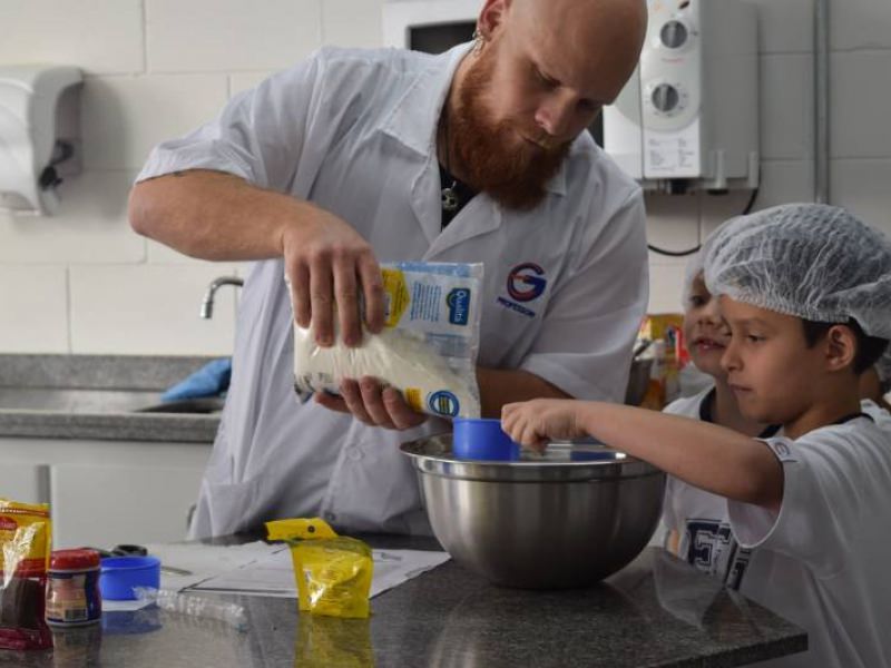 Alunos do 3º ano preparam as receitas do livro “Poemas e comidinhas”.