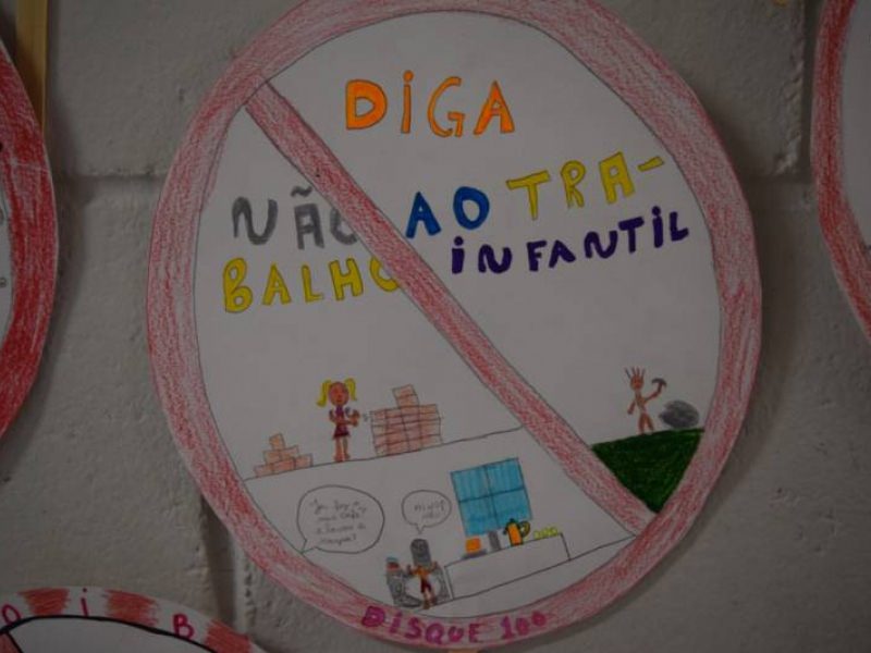 Na semana de 26 a 30 de setembro, os alunos do 5º ano do Ensino Fundamental, com o auxílio da professora de História, Leticia Viganó, produziram um slogan contra o trabalho infantil.