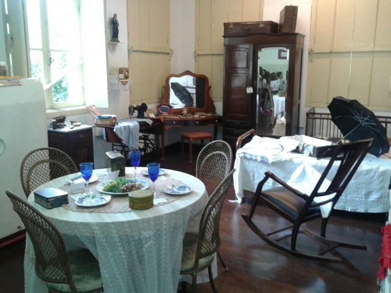 Um dos aspectos do passeio que chamou a atenção dos estudantes foi a exposição que o Museu promove de objetos, móveis, roupas, fotografias, pinturas e brinquedos antigos. Eles se impressionaram com as câmeras fotográficas de décadas passadas, completamente diferentes dos celulares tão acessíveis de hoje em dia, e com as maquetes baseadas no Palacete De Nardi, hoje sede do Museu.