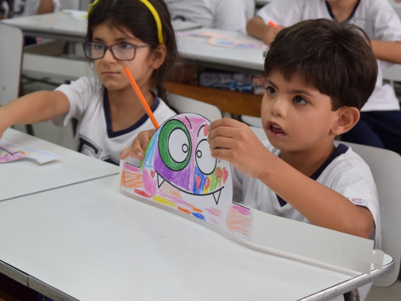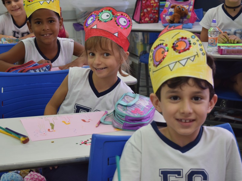 Depois de aprenderem os aspectos históricos da comemoração, as crianças confeccionaram um chapéu para usarem em blocos e festas, muito comuns nessa época do ano. Para torná-los únicos, cada estudante decorou o adereço com muita criatividade. Confira as fotos da atividade artística:
