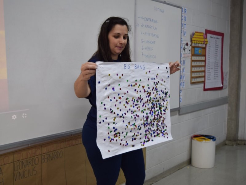 Nas aulas seguintes, os pequenos aprenderam sobre a nossa galáxia, a Via Láctea. Cada estudante desenhou e representou um elemento: todos os planetas, o Sol, a Lua, estrelas e até mesmo cometas. Isso tudo para entender como funciona todo o Sistema Solar.