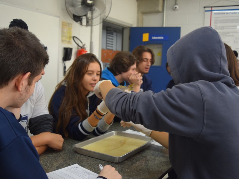 Durante toda a atividade, os alunos ficaram atentos, relacionando o conteúdo teórico estudado em sala de aula com o que estavam observando na estrutura do animal.
