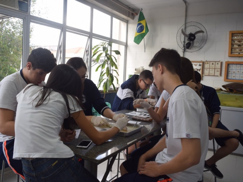 Os alunos da 2ª série do Ensino Médio estudam, em Biologia, anatomia e morfologia de diferentes grupos de animais. Para observar na prática as estruturas, os jovens dissecam alguns animais, ou seja, realizam um exame minucioso da anatomia do animal estudado.