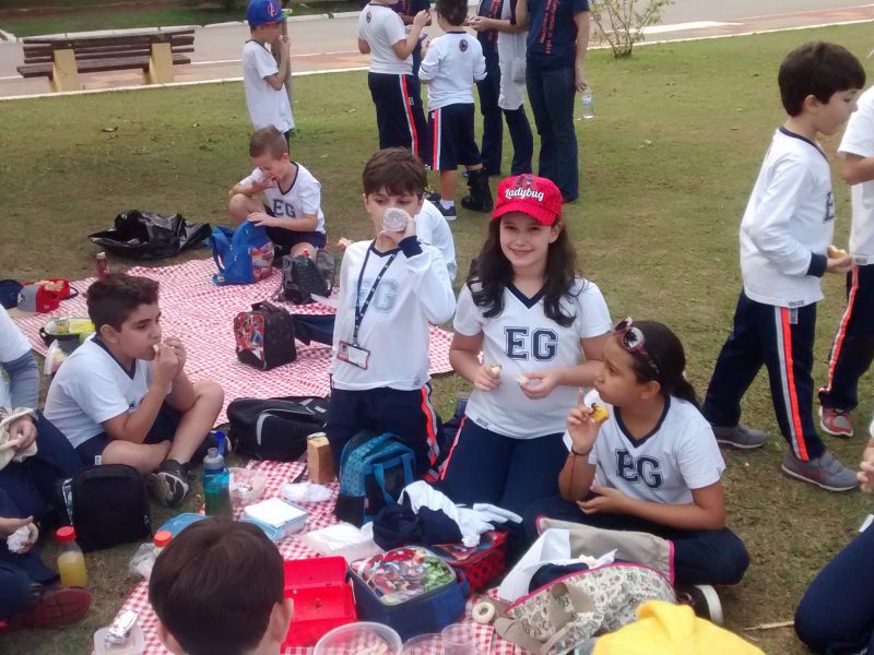 O piquenique aconteceu no parque Chico Mendes, em São Caetano do Sul, e os alunos ficaram responsáveis por levar alimentos saborosos que não prejudicassem a saúde dos colegas. Os pequenos adoraram a atividade!