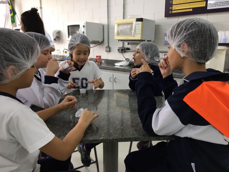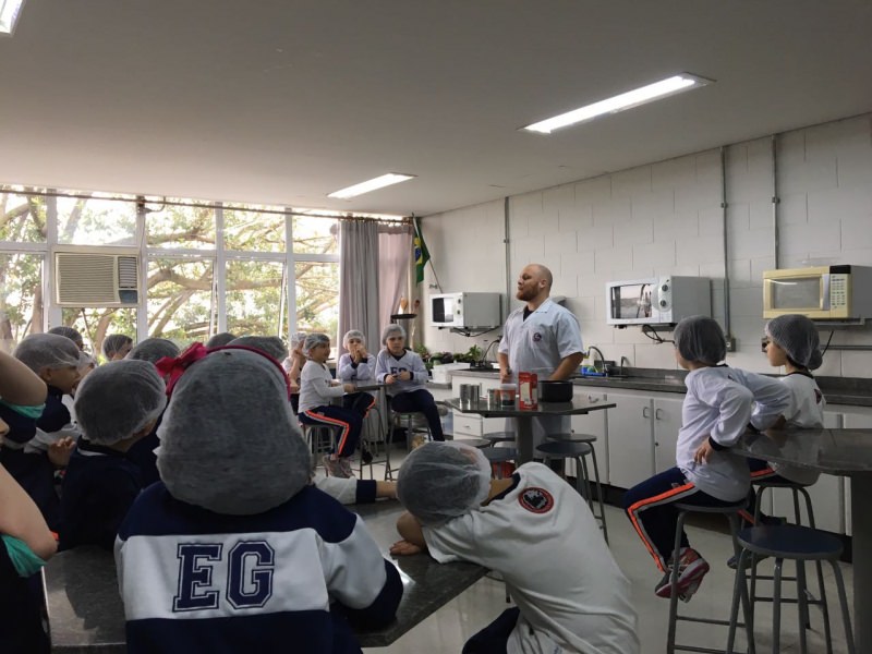 Os alunos do 2º ano do Ensino Fundamental, durante a última semana de agosto, realizaram atividades na Cozinha Experimental, onde fizeram a receita de brigadeiro.