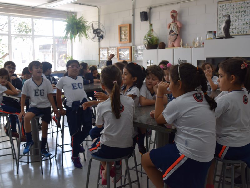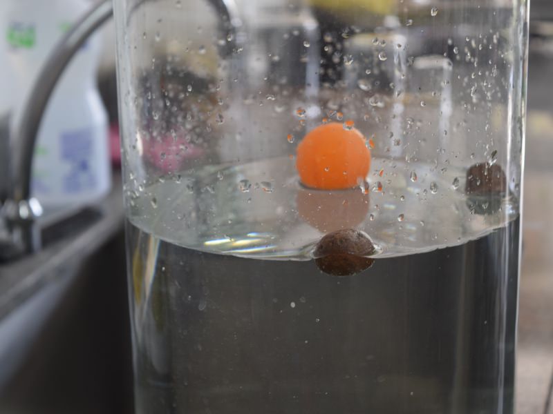 Lá os alunos testaram cada objeto utilizado no experimento, lápis, bola de pingue-pongue, pedra de argila, pedra, rolha emborrachada e de cortiça, para descobrir se eles afundavam ou flutuavam, na água.