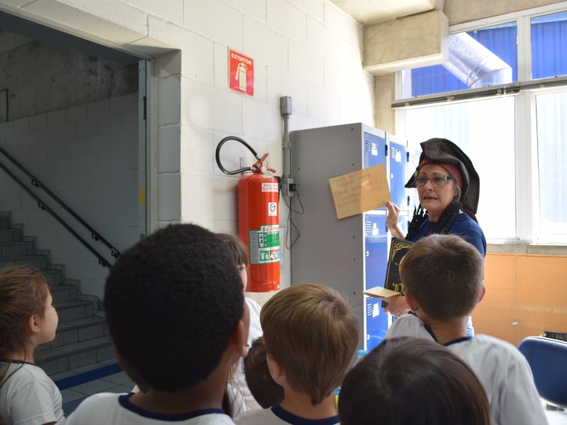 Durante a atividade, o livro foi mostrado aos alunos e foi explicado a eles que teriam de procurar, pelo Colégio, o tesouro, com a ajuda das pistas deixadas pela personagem Arara Nelson, que também escondeu o tesouro dos personagens do Caderno Anglo.