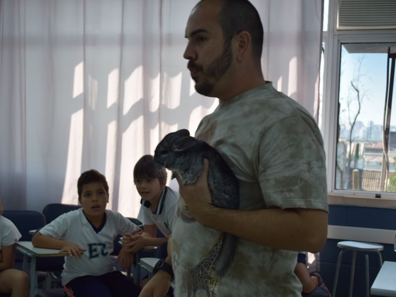Para complementar a aula, no dia 12 de setembro, receberam a visita do Biólogo André Costa que, além de explicar a função dos funcionários de um zoológico, trouxe bichinhos, como rã, chinchila, jacaré, cobra e coruja e explicou a classificação e as características de cada um para os estudantes. André ressaltou o respeito que devemos ter com todas as espécies e qual a importância delas.
