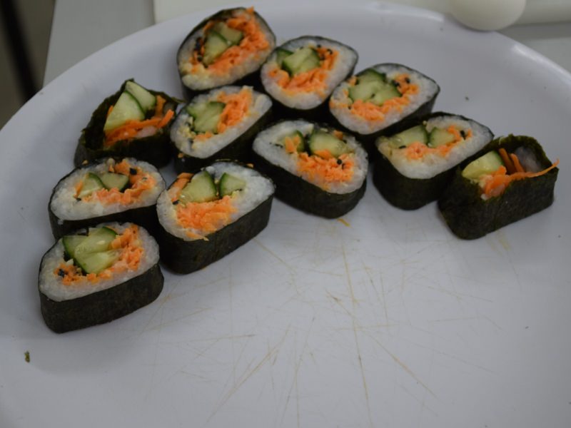 Para ajudar na compreensão do conteúdo, a professora propôs aos alunos que fizessem sushi na cozinha experimental, com o auxílio do Prof. Carlos Sebode. A atividade, além de ajudar a fixar o conteúdo, apresentou a culinária asiática aos alunos que não a conheciam.