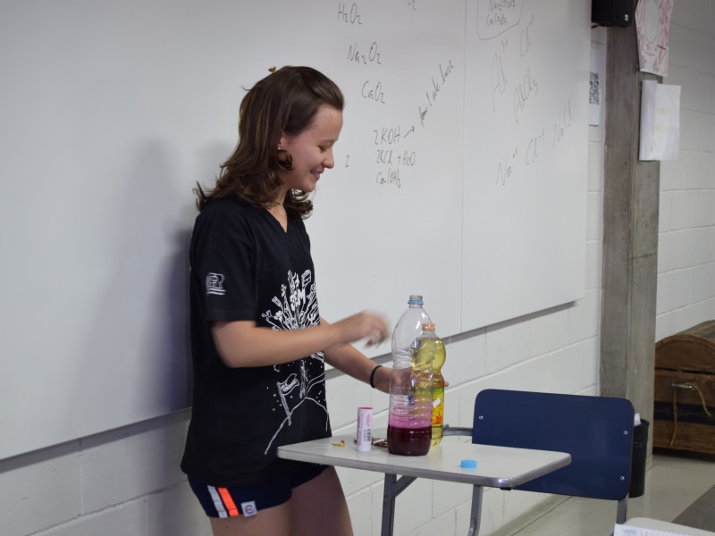 A escolha das experiências ficou a critério dos alunos, que escolheram aquela que mais lhes agradava, como geleca magnética, barco movido a detergente, vela que apaga com CO etc.