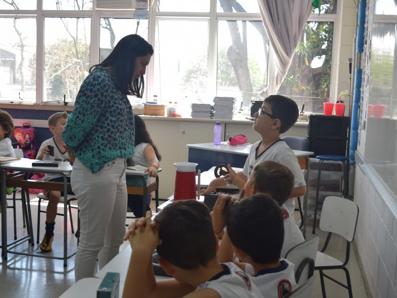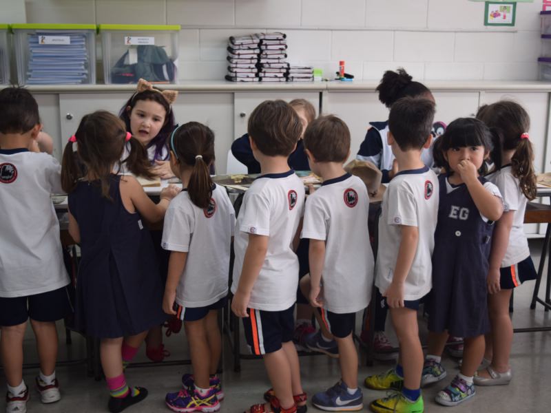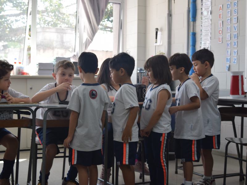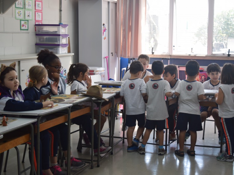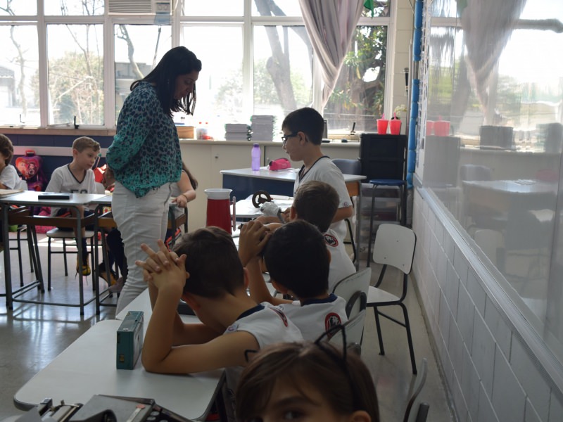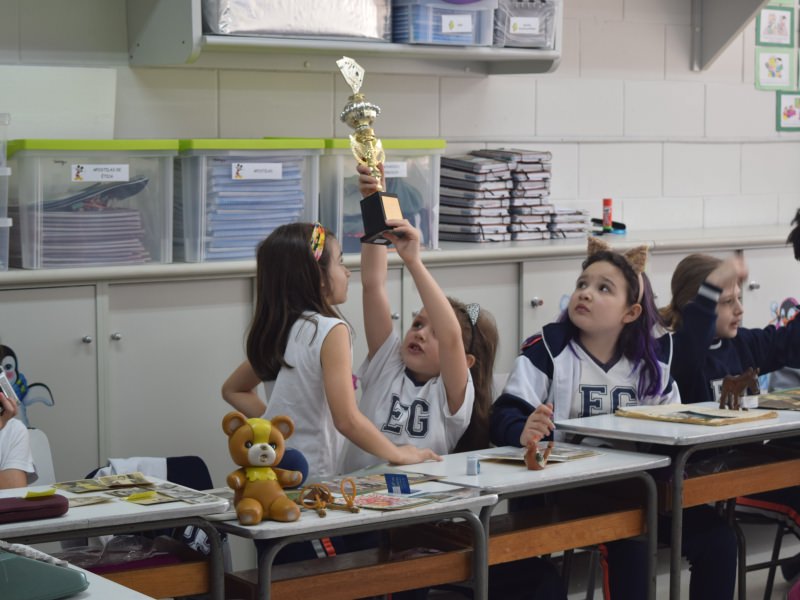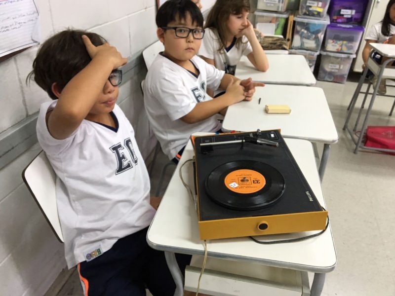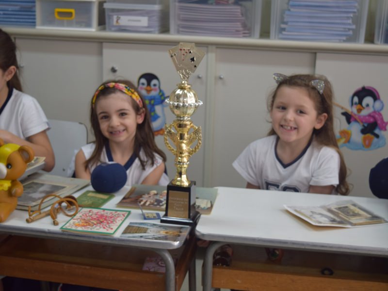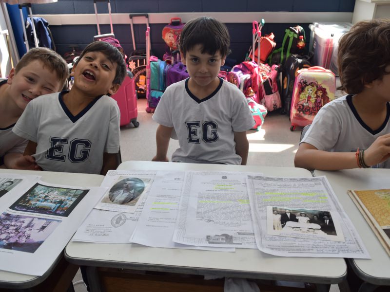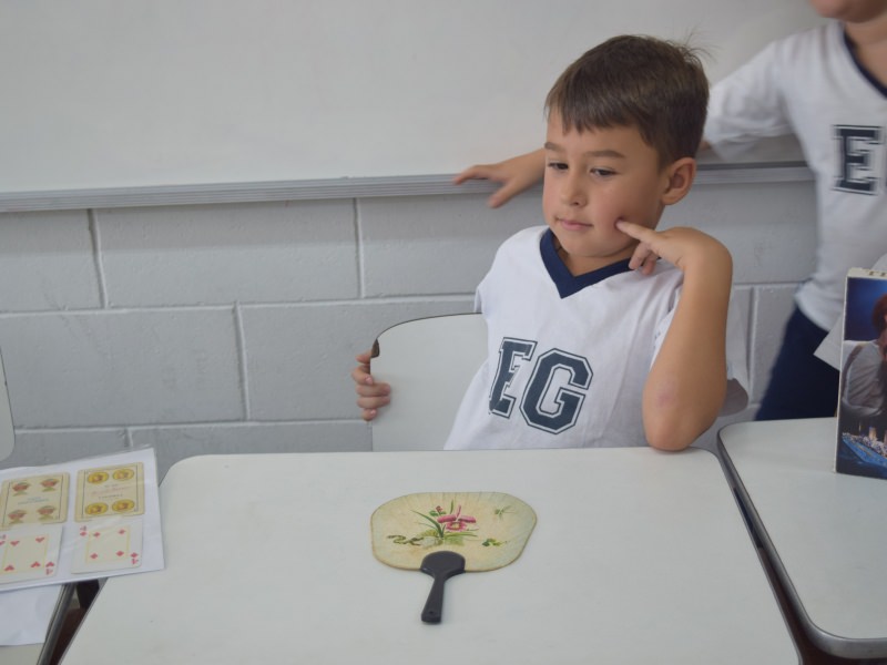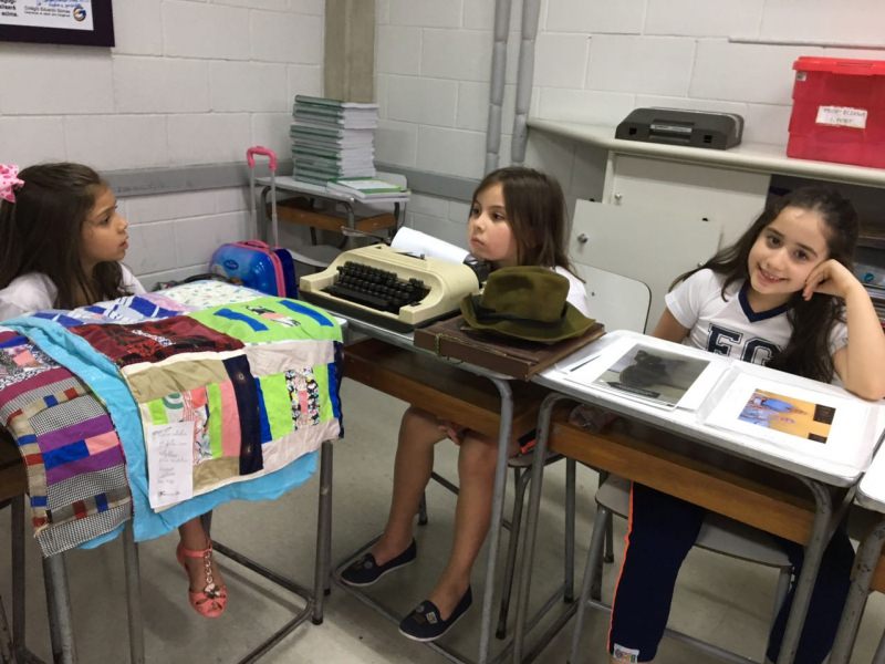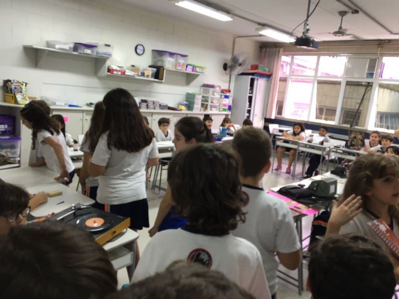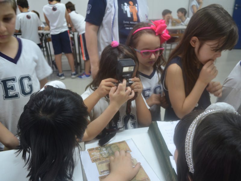 A apostila Anglo propôs aos alunos que trouxessem para a classe objetos antigos que estivessem relacionados com as suas famílias, como fotografias, relógios, quadros, máquinas de escrever, câmeras fotográficas etc. Com os objetos, os alunos montaram uma exposição para apresentar aos colegas e às professoras as suas histórias.