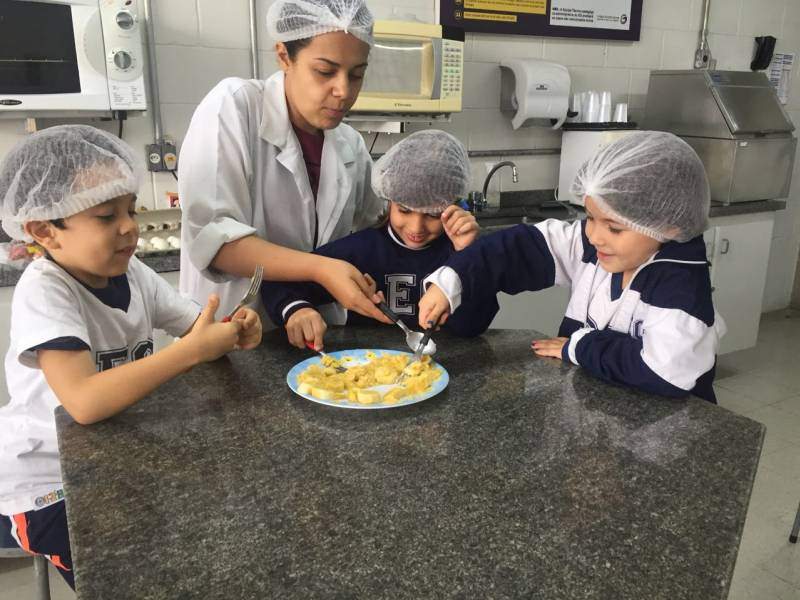 Na semana de 06 de novembro, os alunos do Integral desenvolveram uma receita de bolo sem açúcar, na cozinha experimental.