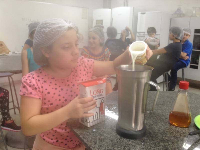 Na última Oficina de Nutrição do semestre, os alunos do Integral prepararam duas receitas de smothies, com iogurte e frutas. Além desses ingredientes, também havia chia, coco e mel para decorar a preparação e deixá-la ainda mais saborosa.
