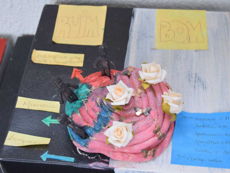 Em classe, os alunos realizaram uma apresentação em PowerPoint, explicando o poder da imagem para o cotidiano e como essa ferramenta foi utilizada na escultura do cérebro. Fizeram uma explicação sobre como a pessoa afetada vive no cotidiano, se é necessário algum remédio ou se existe algum tipo de cirurgia. Os trabalhos ficaram expostos nos corredores do EG.