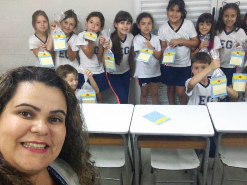 Em seguida, os alunos da Educação Infantil fizeram desenhos, e os maiores escreveram mensagens de admiração. Todos deveriam entregar sua produção a quem representasse a mulher-maravilha de sua vida.