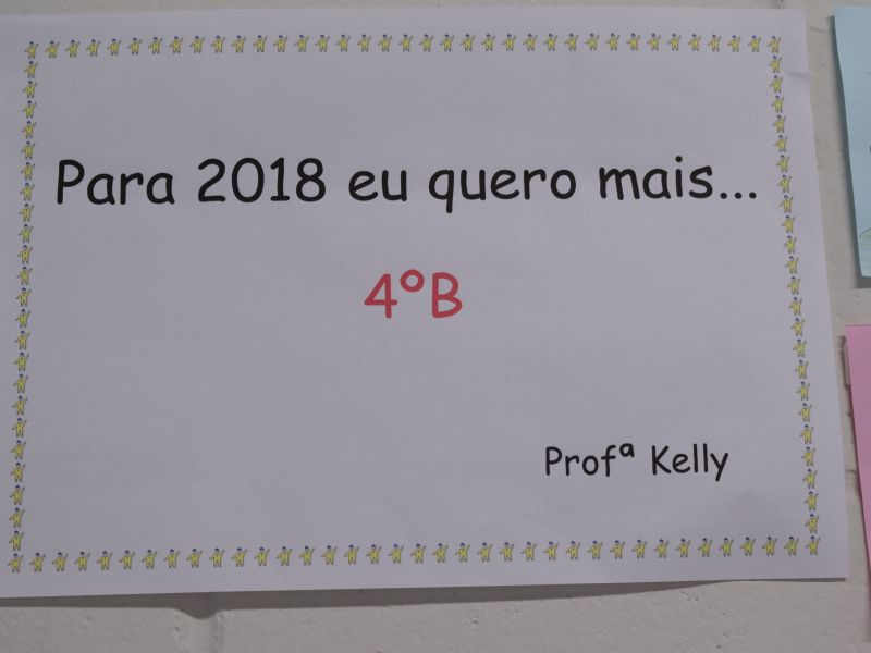 As turmas do 4º ano do Ensino Fundamental realizaram uma atividade, sob a orientação da Profª Kelly, na qual escreveram os combinados, feitos em sala, para 2018, como não jogar lixo no meio ambiente, respeitar o próximo, não praticar bullying com os colegas etc. Posteriormente essas mensagens foram fixadas nos corredores do Colégio.