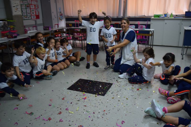 Os alunos do 1º ano do Ensino Fundamental, com o auxílio das professoras Eny Razzante, Kellyn Regina, Roberta Dragoni, Bruna Rossi e Valquíria Castilho, aprenderam sobre o surgimento do universo e a explosão do Big-Bang.
