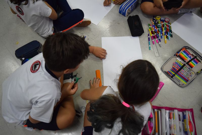 Depois da pesquisa, realizaram uma atividade em que desenharam como seriam seus heróis saudáveis, inspirados no Nutriamigos.