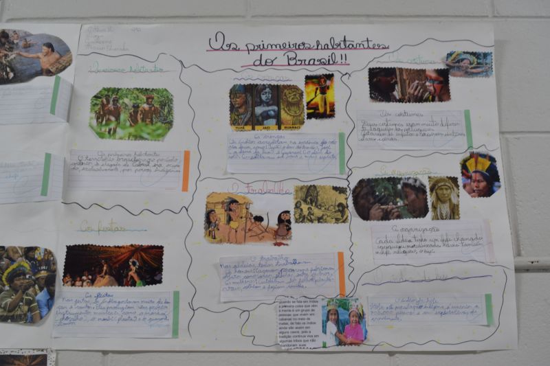 Em grupo, produziram o trabalho final e, juntando todas as informações que conseguiram, montaram cartazes com imagens e textos explicativos, também mostrando a situação atual do índio no Brasil, lutando por suas terras e seus direitos.