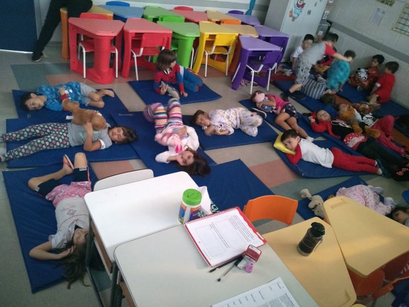 Ao trazerem o livro, os alunos realizaram uma dramatização para “vivenciarem” um pouco da história de uma casa onde todos dormem muito e sentem muito sono, até que, um dia, tudo muda por causa de uma pulga que se mantém acordada.