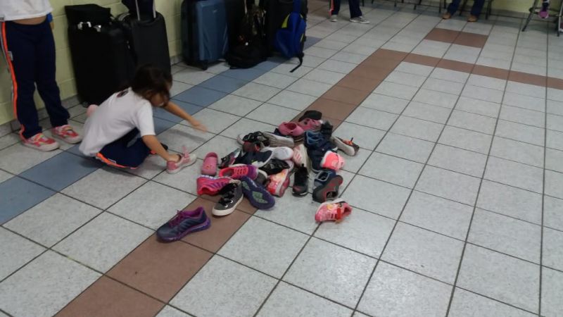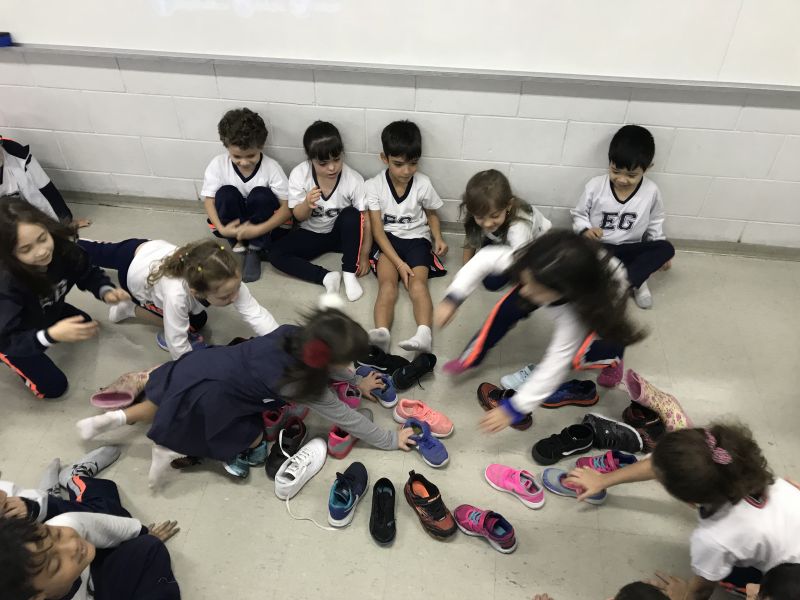 Para colocar o que foi aprendido em prática, os estudantes realizaram um trabalho dinâmico no pátio do EG, no qual misturaram todos os seus tênis e depois procuraram seus respectivos pares.