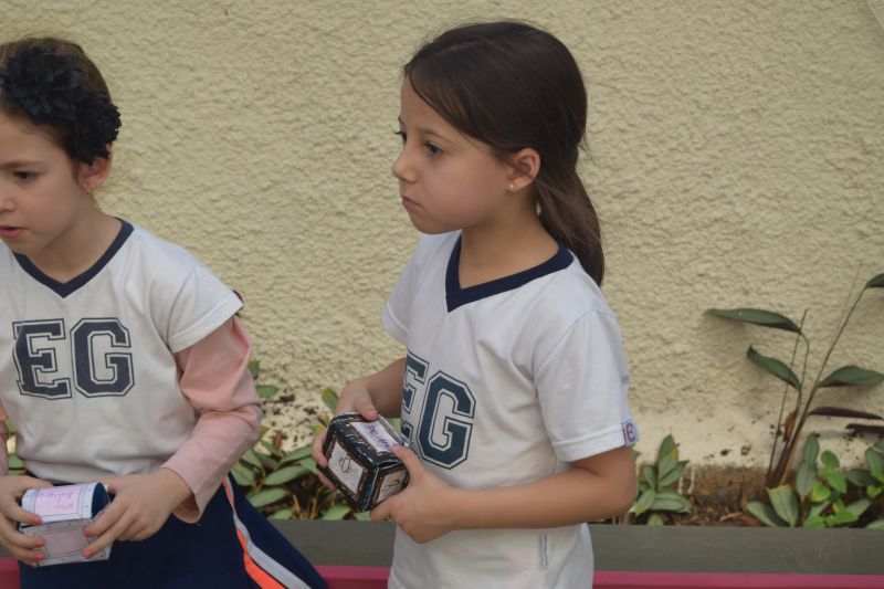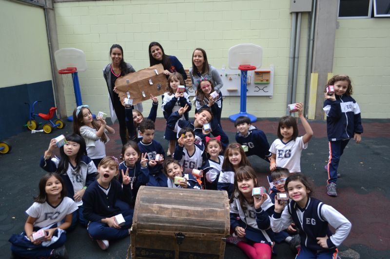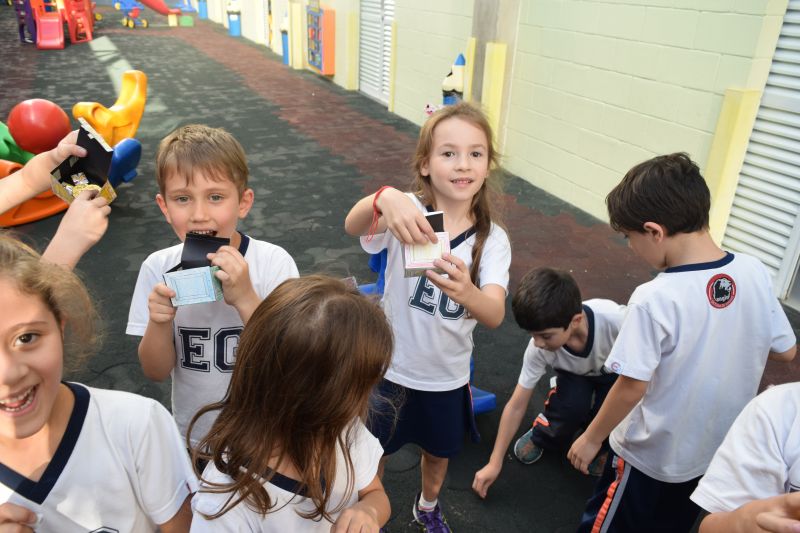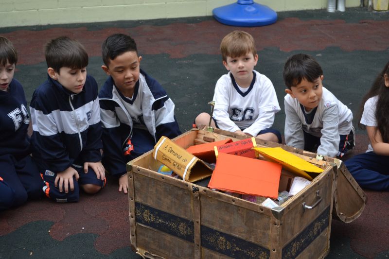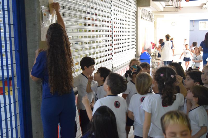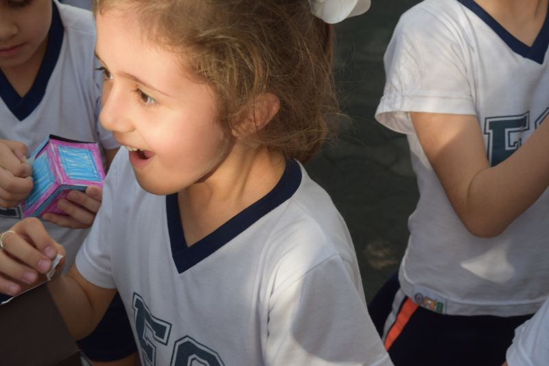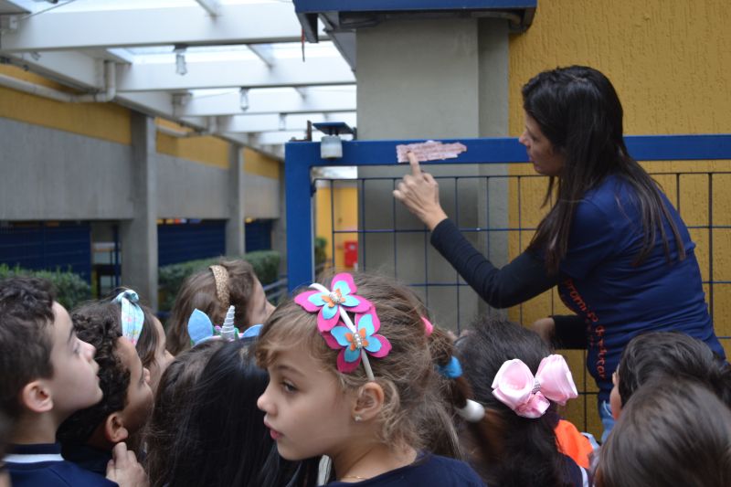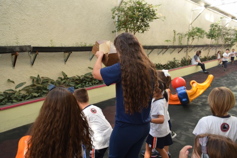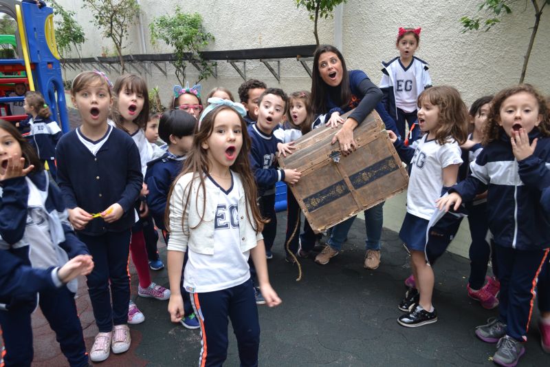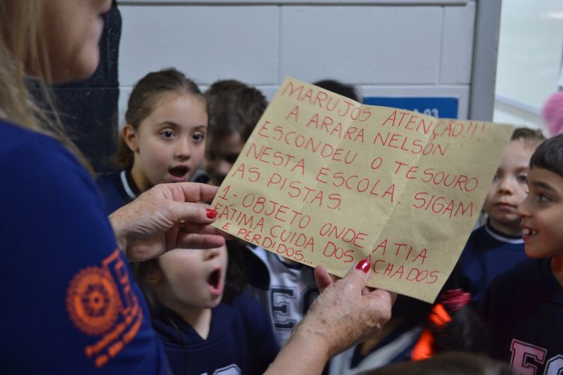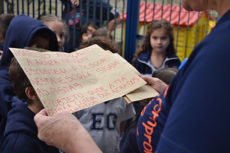 Os alunos do 1º ano do Ensino Fundamental, orientados pelas professoras Valquíria Castilho, Eny Razzante, Kellyn Moura, Roberta Achkar e Bruna Rossi, brincaram de caça ao tesouro pelo Colégio!