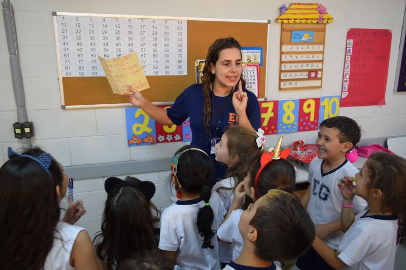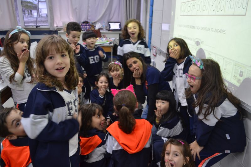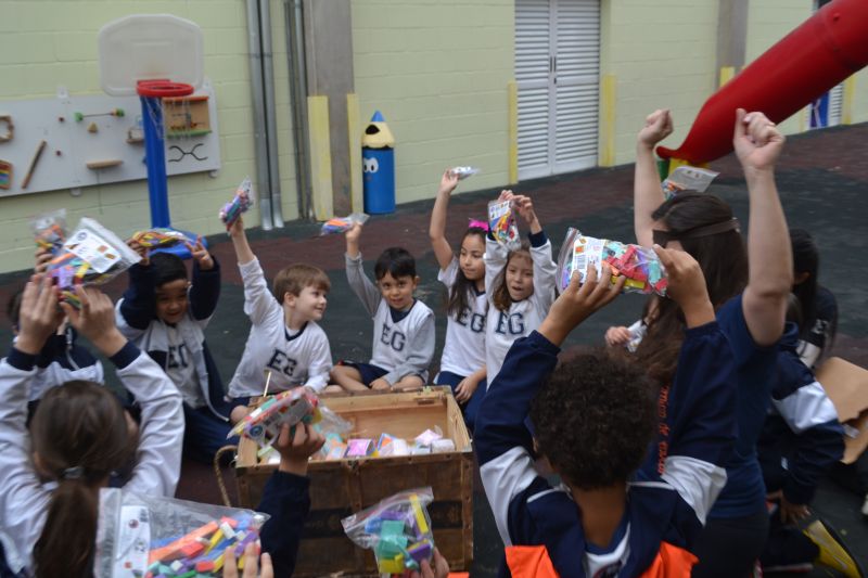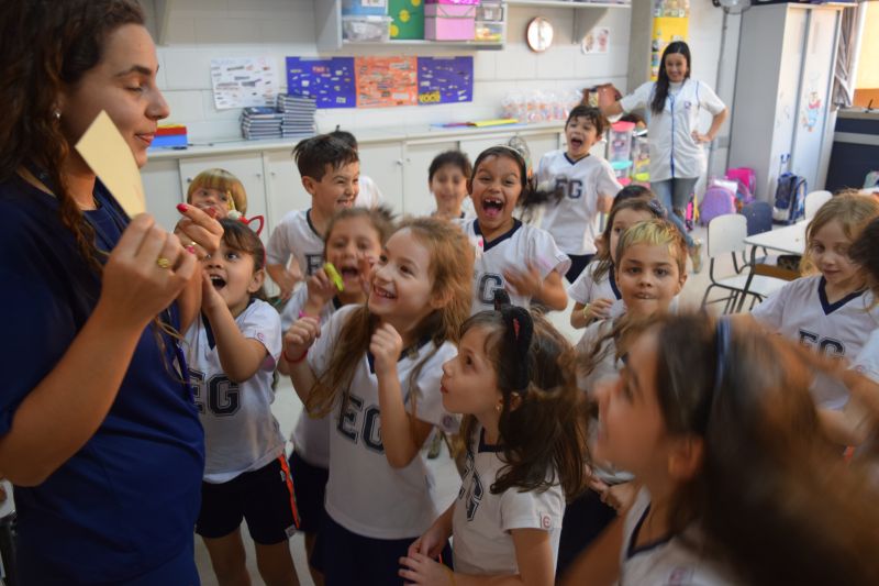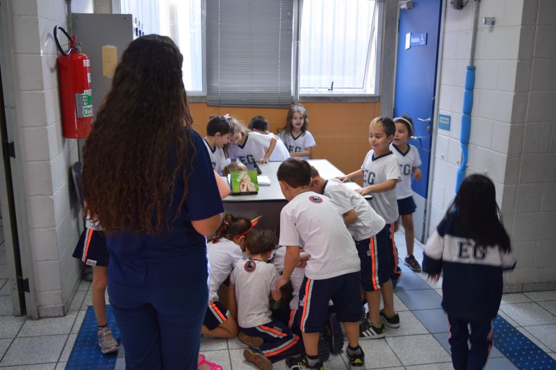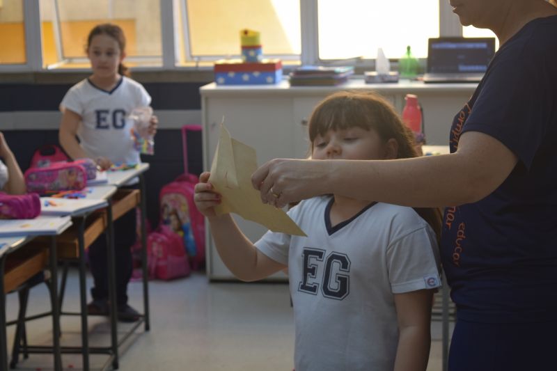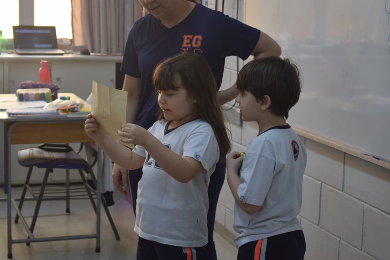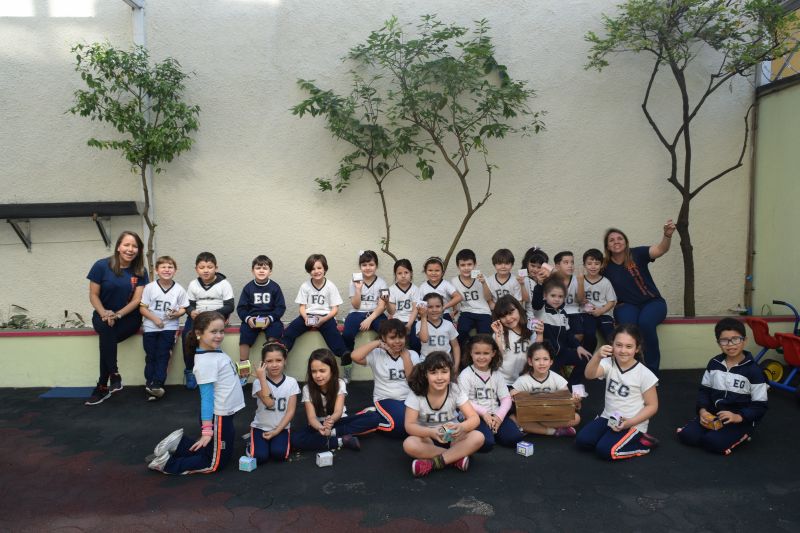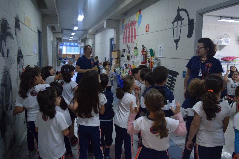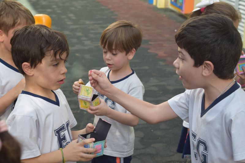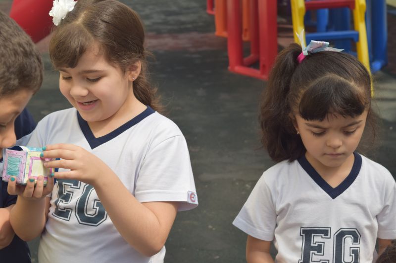 Os alunos do 1º ano do Ensino Fundamental, orientados pelas professoras Valquíria Castilho, Eny Razzante, Kellyn Moura, Roberta Achkar e Bruna Rossi, brincaram de caça ao tesouro pelo Colégio!
