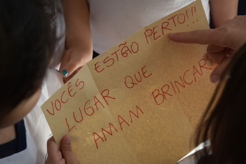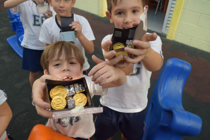 Ao final da atividade, os alunos acharam o tesouro, que era uma porção de moedinhas de chocolate.
