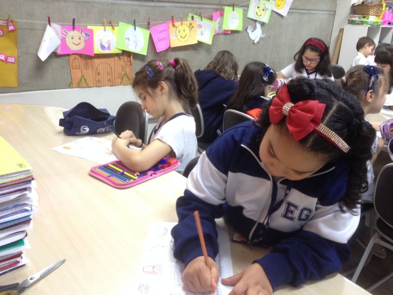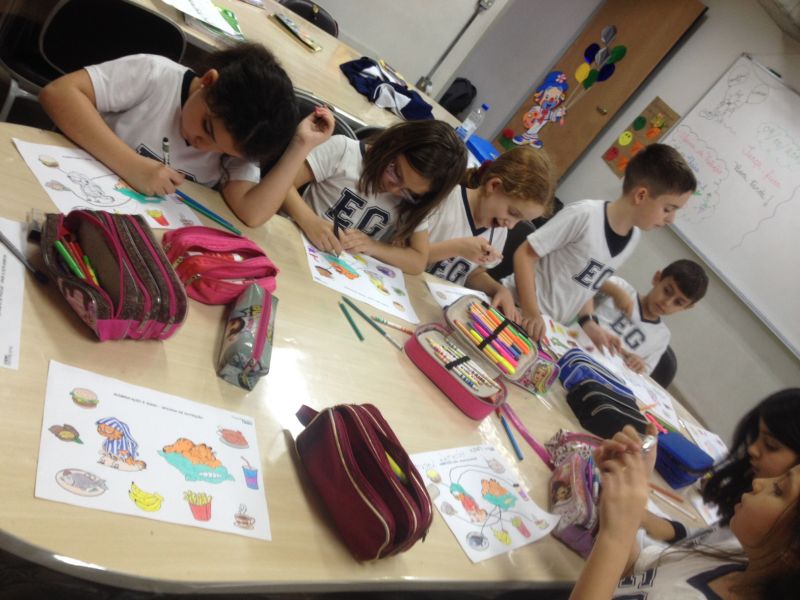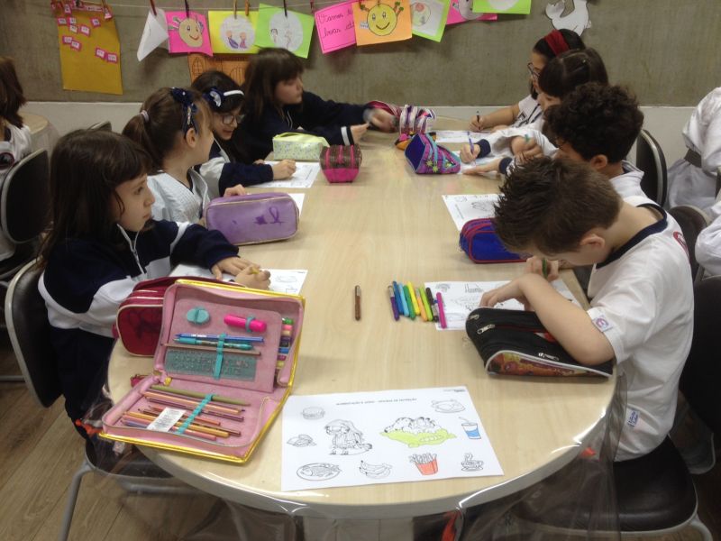 Na semana de 08 de outubro, foram realizadas Oficinas de Nutrição com a temática de Alimentação e Sono. Em aula, os alunos da Educação Infantil coloriram imagens de alimentos e diferenciaram os que contribuem para a qualidade e para o prejuízo do sono. As turmas do Ensino Fundamental I participaram da brincadeira da forca e, posteriormente, as palavras encontradas foram encaixadas em uma frase sobre a relação entre o sono e a alimentação.