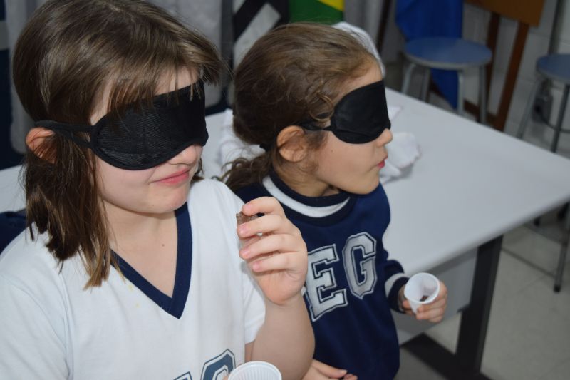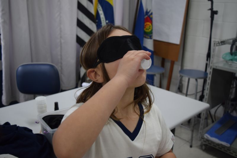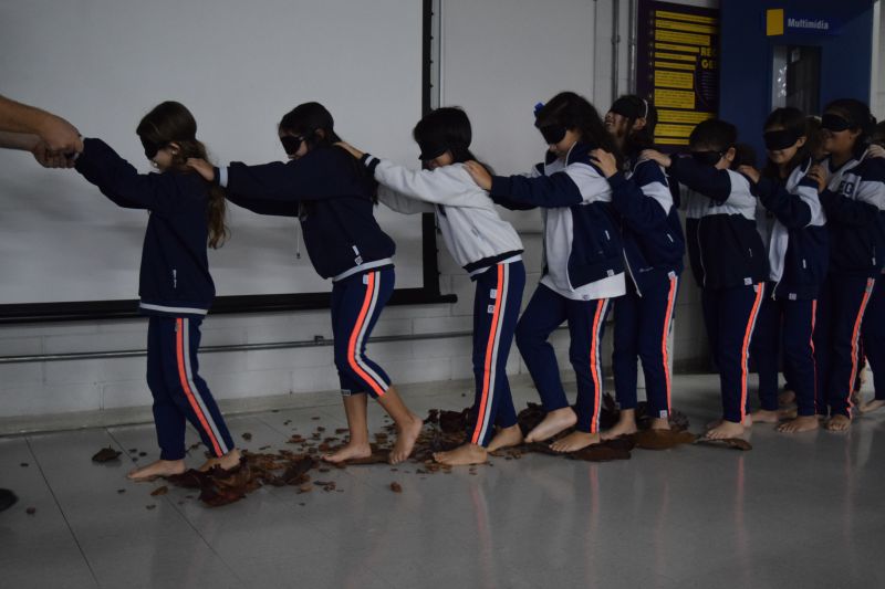 Os alunos do 2º ano do Ensino Fundamental, orientados pelas professoras Crislaine Machado, Eloiza Avalos, Sheila Balbino e Maria Cristina Ferreira, participaram de uma dinâmica para testarem os sentidos.