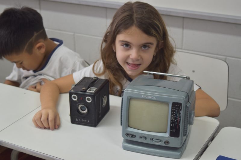 Os alunos do 2º ano do Ensino Fundamental, orientados pelas professoras Crislaine Machado, Eloiza Avalos, Sheila Balbino e Maria Cristina Ferreira, realizam uma exposição de objetos antigos no Colégio.