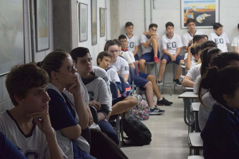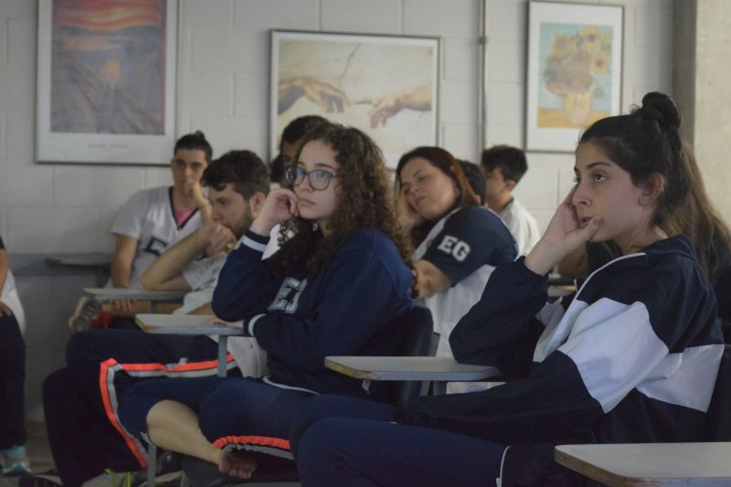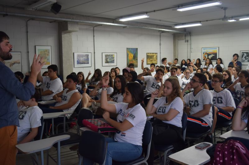 No dia 03 de outubro, os alunos do 8º ano do Ensino Fundamental à 3ª série do Ensino Médio assistiram à palestra “Aprendizagem Socioemocional, autocontrole e não consumo de drogas, experiências e caminhos”, mediada pelo professor Felipe Magane, integrante do Programa Semente- Aprendizagem Socioemocional, parceiro do Colégio Eduardo Gomes.
