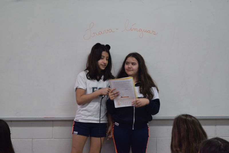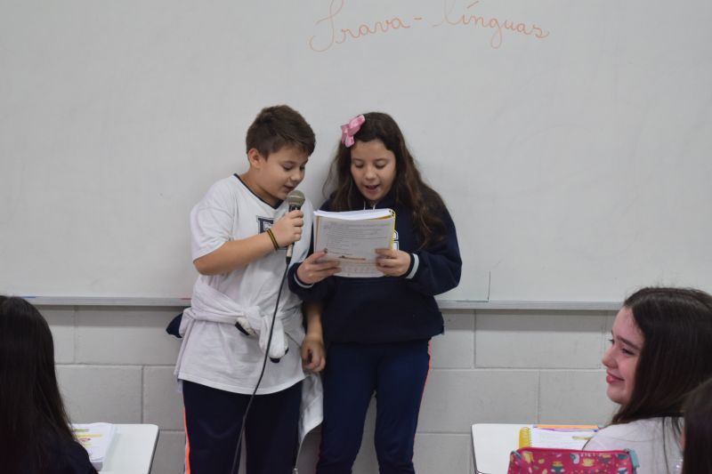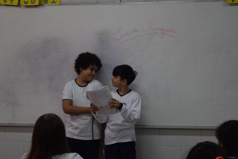 Os alunos do 4º ano do Ensino Fundamental, orientados pela professora Jéssica Machado, aprimoraram a fluência na leitura de trava-línguas.