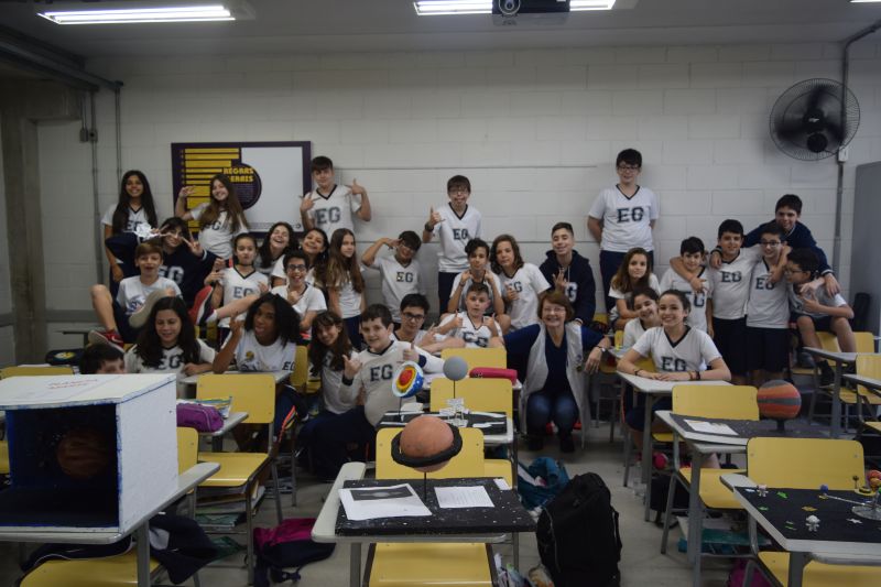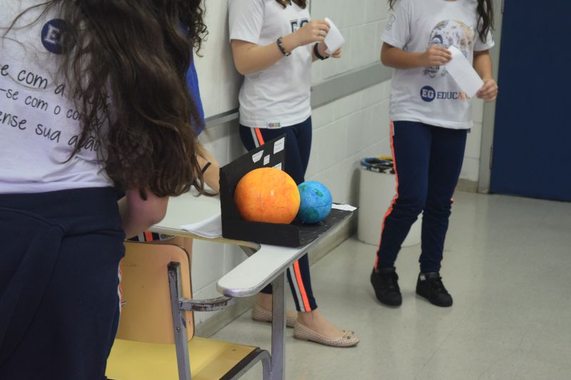 Orientados pela professora Maria Bykovas de Souza, os alunos realizaram a atividade com os objetivos de aprender de diferentes formas os conteúdos relacionados ao Sistema Solar, partilhar informações em grupo de maneira organizada, preparar uma maquete e apresentar o trabalho para a sala.
