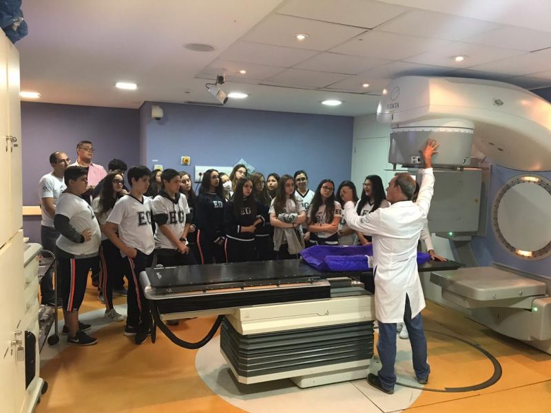 Lá conheceram a história da instituição, visitaram espaços onde crianças realizam sessões de quimioterapia e aprenderam sobre o tratamento com radioterapia.