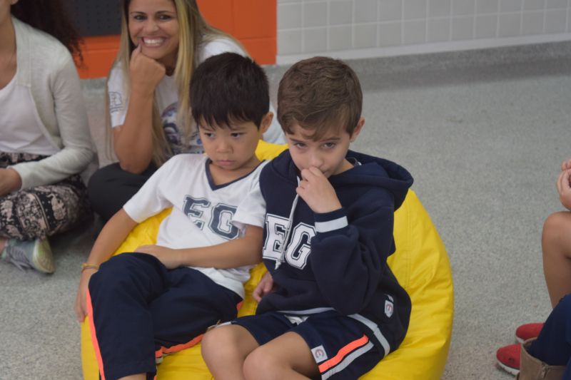 Orientados pela Profª Roberta Zanona, os alunos conheceram, antes de tudo, as regras de uso do local. Em seguida, conheceram o robô, cantaram, descobriram mais sobre energia elétrica, tecnologia e divertiram-se muito com o o experimento da bolha de sabão.