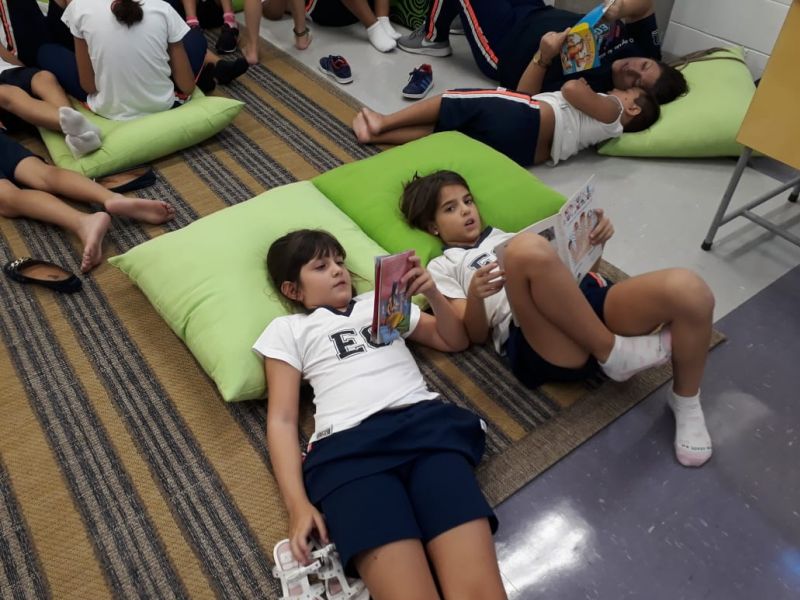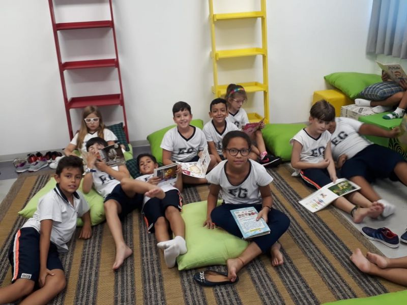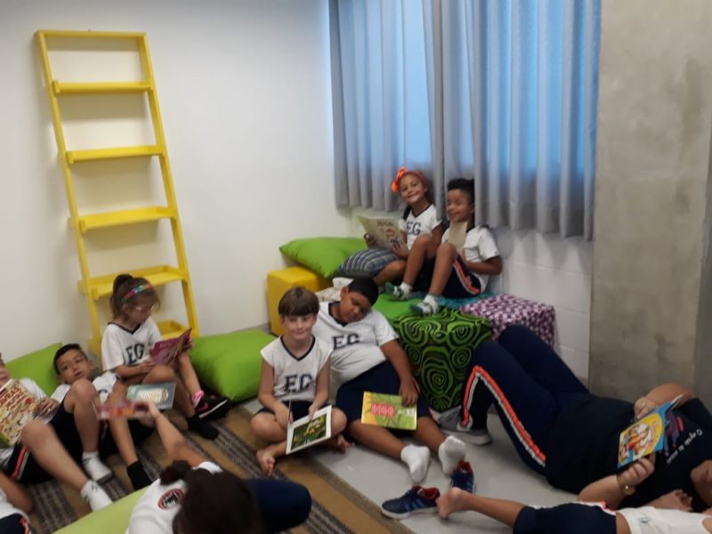 Os alunos conheceram as regras do local, escolheram um livro e foram até a sala de leitura para colocarem suas habilidades em prática.