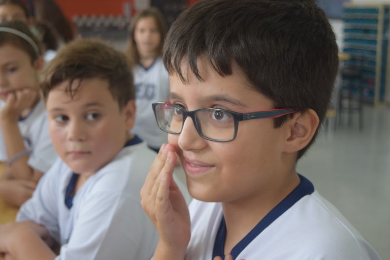 Orientados pela professora Maria Eugenia Ribeiro, com o auxílio de Virgínia de Amorim, o 5º ano do Ensino Fundamental foi até o Espaço Maker para um jogo de perguntas e respostas a partir do conteúdo trabalhado nas aulas de Geografia.