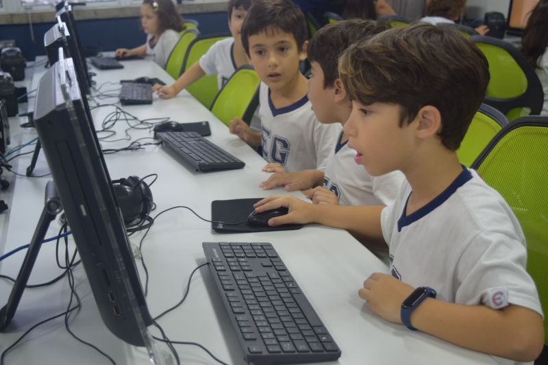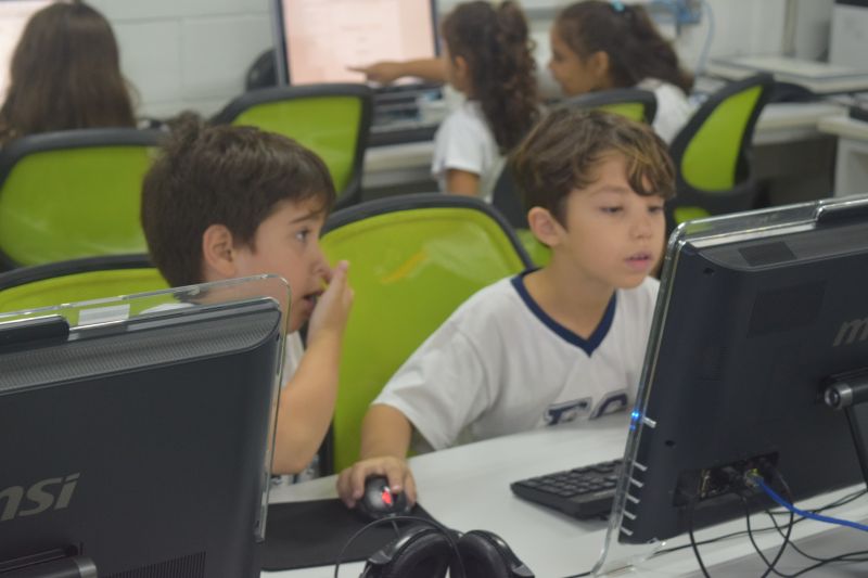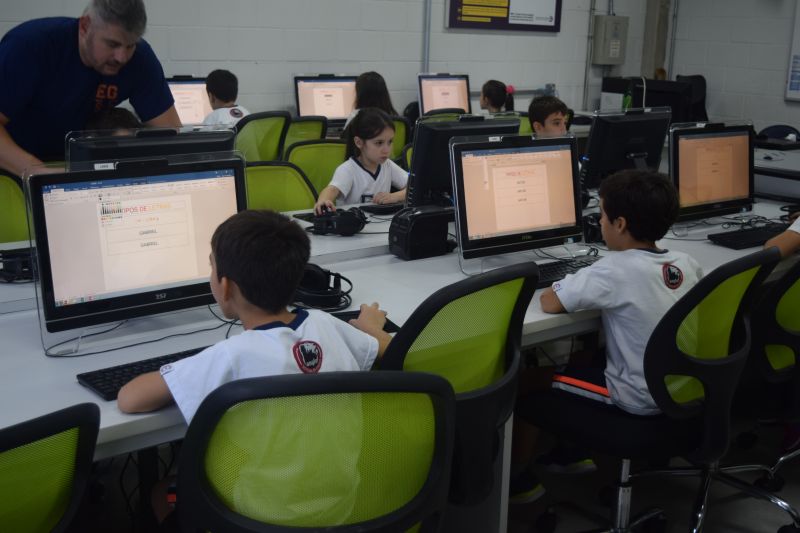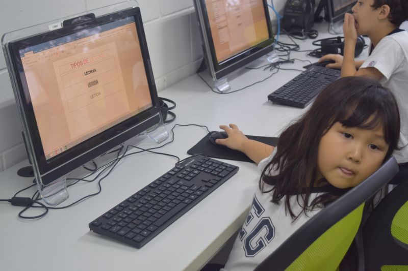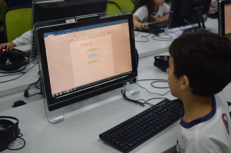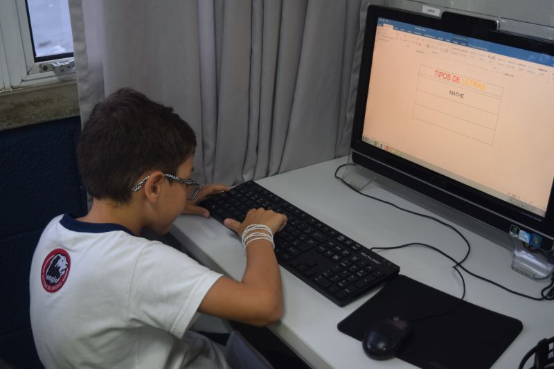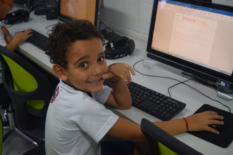 No mês de março, os alunos do 2º ano do Ensino Fundamental, sob orientação das professoras Crislaine Machado, Eloiza Avalos, Juliana Moura, Maria Cristina Savi e Sheila Balbino e das orientações específicas do Prof. Hélio Martinelli, de Informática, aprenderam a escrever, usando o computador.